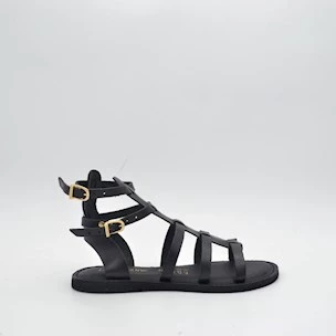 Le Salentine 1158 sandalo schiava vitello nero con fibbie