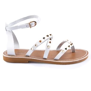Le Salentine 1012 sandalo infradito vitello bianco con borchie