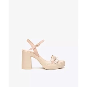 Nero giardini E513664D sandalo logato pelle beige tacco e platò